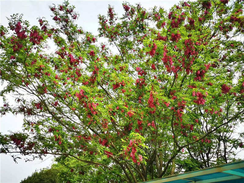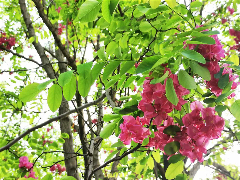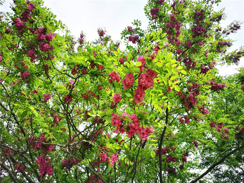“槐林五月漾瓊花,郁郁芬芳醉萬家。”眼下,在周口濱河公園,紅色的槐花怒放,芳香四溢,惹人心醉。陽光下,一串串、一簇簇、一樹樹槐花隨風搖曳,美不勝收。周口日報·周道客戶端記者 普淑娟 攝