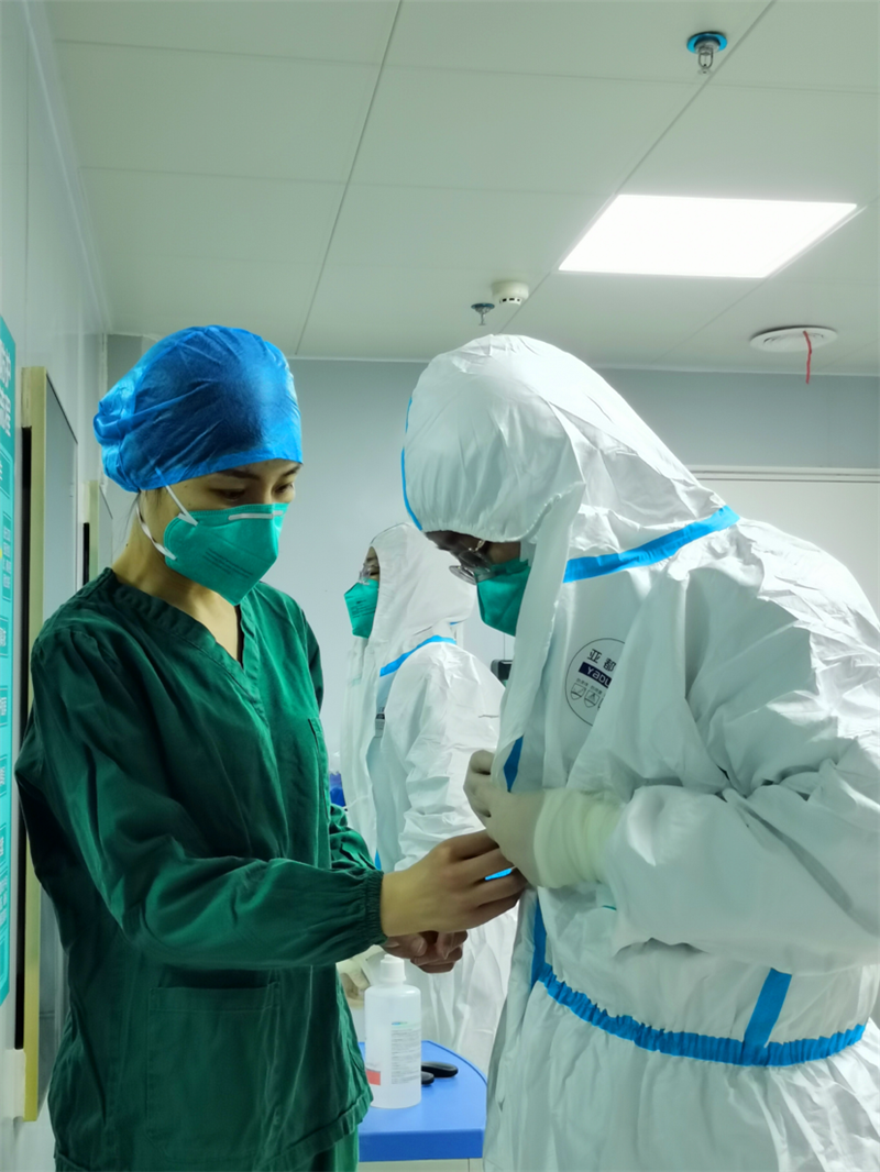 讓一線醫護人員在安全的環境工作和做好自身防護是“感控人”最重要的使命。劉琦嚴防死守,盯好隊員的每一個動作,有污染可能的及時作出提醒糾正,在病房操作治療過程中,及時監督和提醒每一位隊員的手衛生執行,對遇到的問題當場解決。