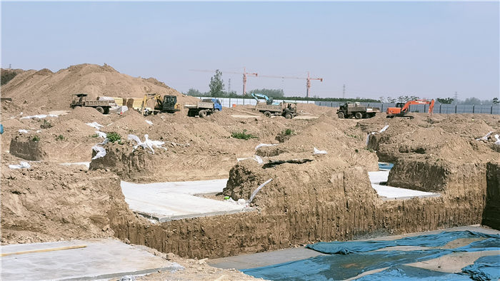 6月9日上午,記者走進沈丘縣現代科技產業園標準化廠房項目區,只見遠處裝載機、運土車在工地上穿梭,近處是已經澆筑完畢的地基墊層,地基旁邊十幾名鋼筋工將大盤的鋼筋拉直,然后再根據需要,在鋼筋加工設備上加工成形。