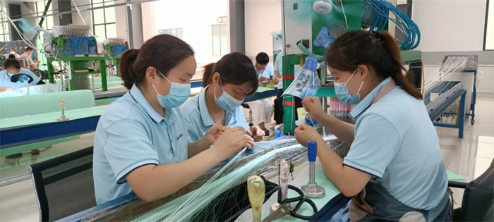 圍繞百億級裝備制造業產業集群發展,提升裝備制造業科技研發創新能力。以加快晶鑫科技上市為引領,推動傳統企業整體轉型升級。晶鑫科技產業園內綠意盎然,高大寬敞的廠房內工人們在各自崗位上有條不紊地忙碌著。拉絲車間,一臺大型編織機械靜靜地運轉。機械的一頭,只有一名技術人員在操控臺上注視著屏幕。工廠負責人說,這是剛安裝調試不久的一臺進口機器,自動化程度和生產效率特別高,全國也沒有幾臺。編織車間,來自卞路口鄉董營行政村的馬杰正在熟練地操作著一臺編織機。晶鑫科技辦公室工作人員李文玲說,那臺機器也是進口設備,技術含量很高,只有業務精湛的工人才能操作。馬杰笑著說,由于她操作的機器先進、技術要求高,工資也比一般人員要高出許多。來自北城街道辦事處的編制工周福榮,按計件每月也能拿到6000元左右的工資。晶鑫科技負責人說,由于疫情防控原因,部分外銷產品出口受到影響,但他們的產品在市場上仍是供不應求。