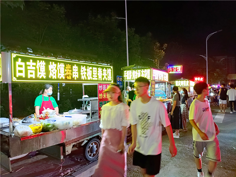 疫情散去,終歸風平浪靜。城市夜晚被賦予更斑斕的色彩、更旺盛的生命力,夜消費、夜休閑、夜文化在鹿邑市民生活中不可或缺。為進一步促進“夜經濟”健康發展,鹿邑縣商務局、市場監管局、城市管理局等有關部門審慎包容、精準施策,堅持管理和服務并重,因地制宜,完善城市便民疏導點經營秩序,建立臨街餐飲店、夜市小吃外擺準入機制。該縣城區原有8個便民疏導點,經過實地調查論證,有關部門又將新近自然形成的3個商販聚集地設立為便民疏導點。同時,以個人申請、實地調查的方式對沿街門店外擺經營進行放開。