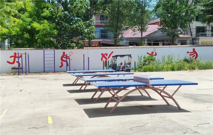 操場上鮮紅的圖案、文字為校園文化建設注入了新鮮活力。