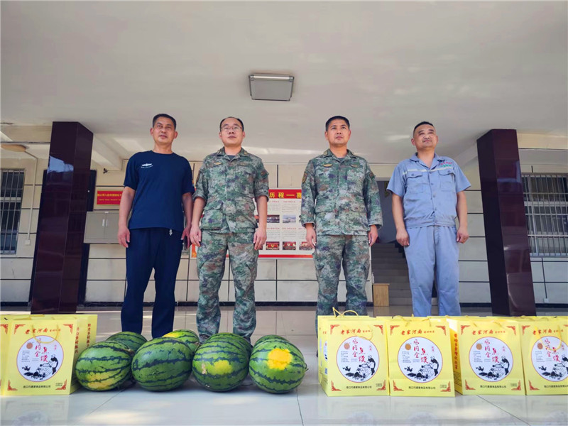 立秋過后,室外溫度依然高達39攝氏度,人們都躲在室內開著空調或吹著風扇享受著清涼。此時,淮陽區人武部大院門口,一中年男子把車上所裝的“淮寶牌”焦饃等慰問品卸下后,徑直走進區人武部政委劉鋒辦公室。