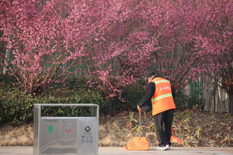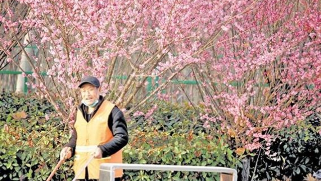 • ?3月11日,一名環衛工人在中心城區光明路旁清掃飄落的花瓣。連日來,隨著氣溫逐漸升高,周口市中心城區路旁、湖邊、花園里的花競相綻放,為周口全力營造宜居、宜業、宜游城市增添了靚麗色彩。