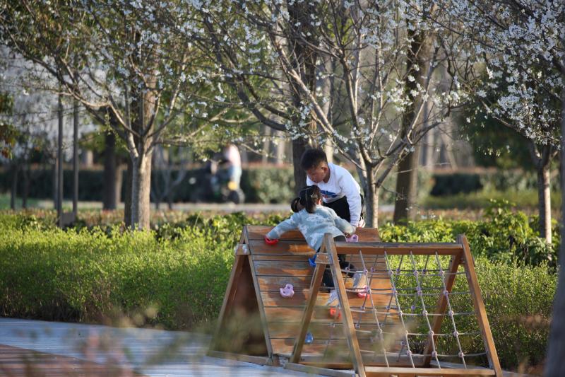 • 春風拂面,百花盛開,明媚的春光里,居民們紛紛走上街頭,來到家門口的公園里,徜徉在花海中,或拍照留念,或嬉戲玩耍。