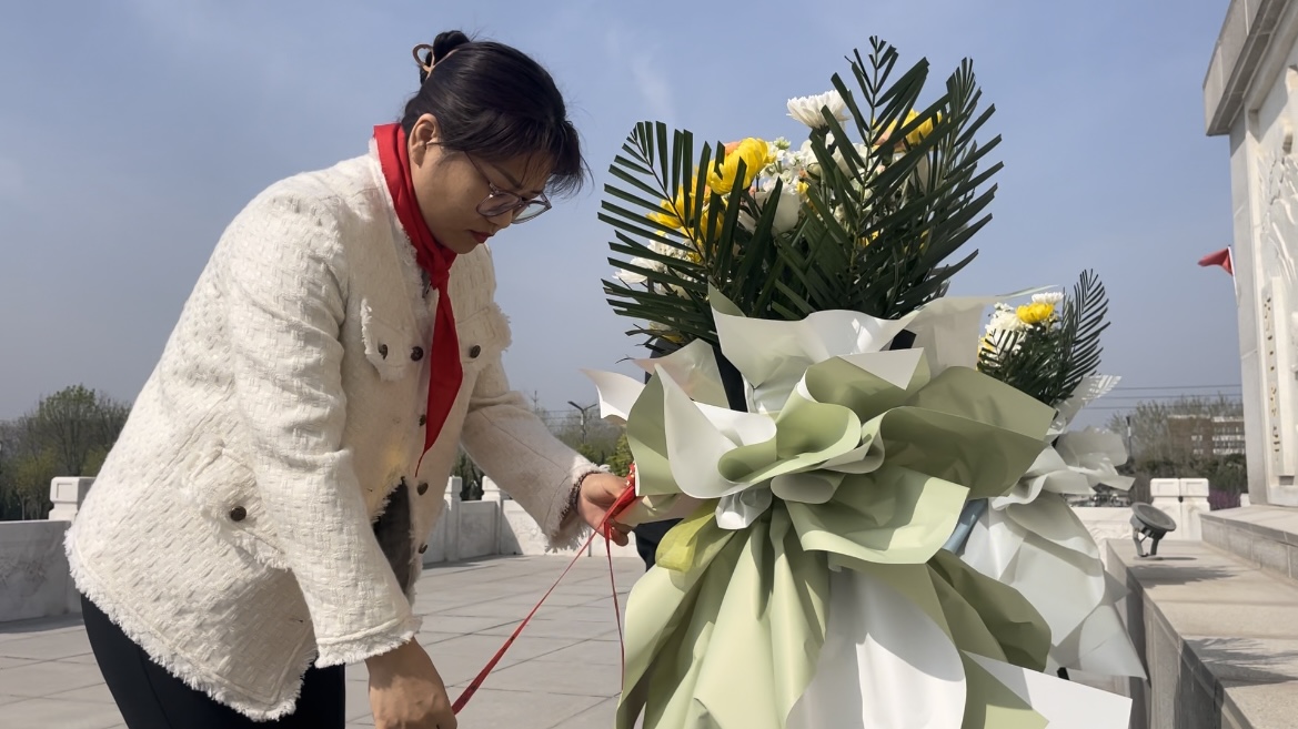 “歲次癸卯,清明節(jié)氣。春柳低垂,云天欲淚。……”活動現(xiàn)場,薛永信宣讀祭文,聲音朗朗激昂,響徹云霄,將活動推向了高潮。
