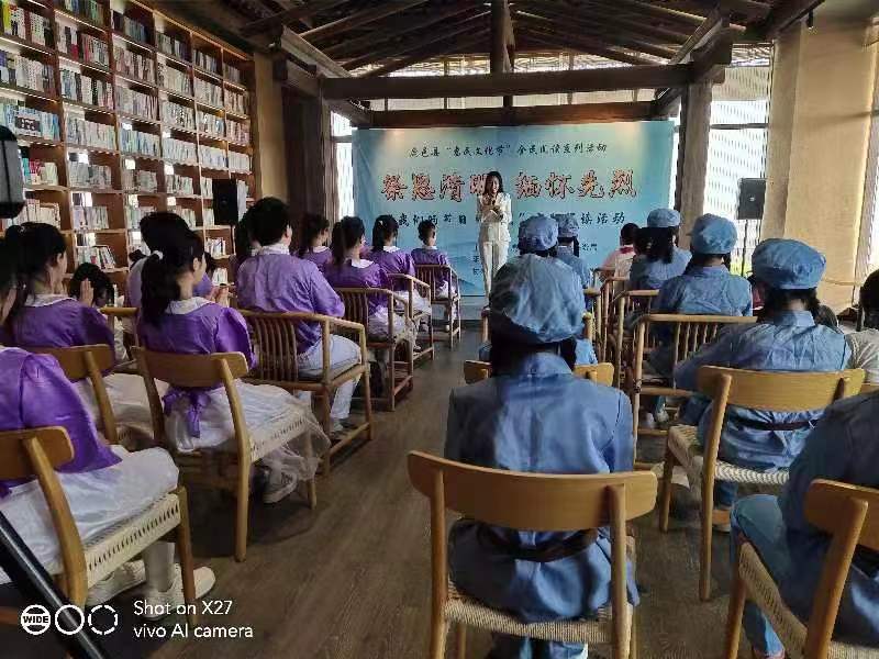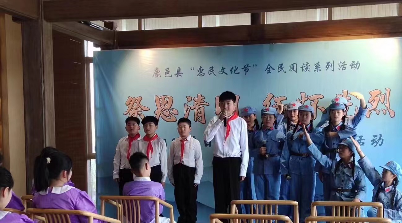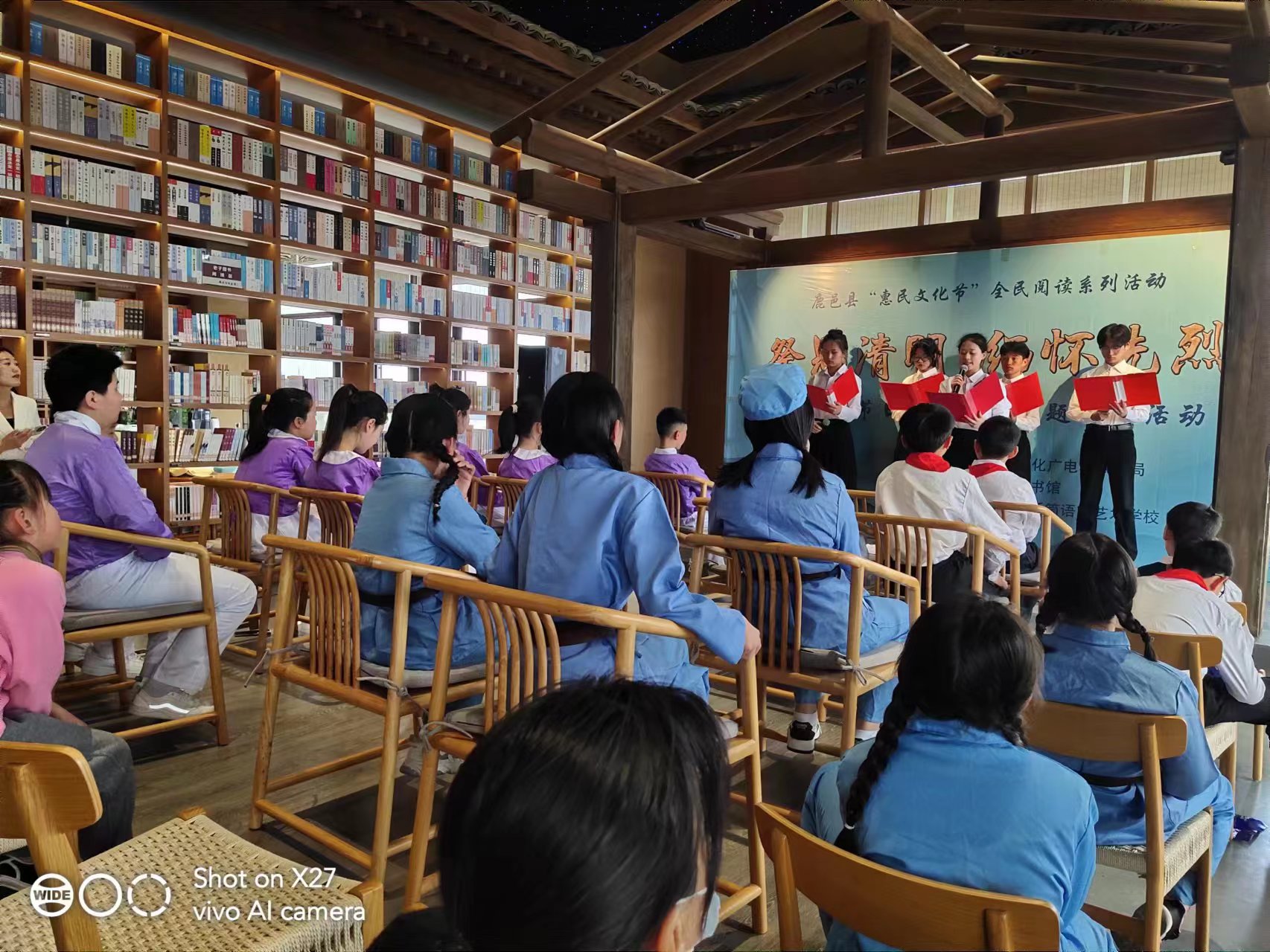 活動由該縣文化廣電和旅游局主辦,縣圖書館承辦,旨在緬懷追憶革命先烈英雄事跡,持續深化“惠民文化節”全民閱讀系列活動,向青少年學生普及清明節文化知識。當日,在該縣圖書館三樓,縣圖書館工作人員講述全縣部分革命先烈英雄事跡和悲壯故事;縣文化廣電和旅游局工作人員講解清明節由來、清明節習俗、清明節為什么要文明祭祀、清明節為什么要祭祀和掃墓等知識;身著“小八路軍裝”的青少年學生依次登臺,聲情并茂地朗誦《中國人清明節》《清明的雨》《我愛你中國》《鄉愁》《清明詩詞》《不朽》《青松禮贊》《穿越時空的對話》等經典詩詞,表達對革命先烈的無限崇敬和緬懷。
