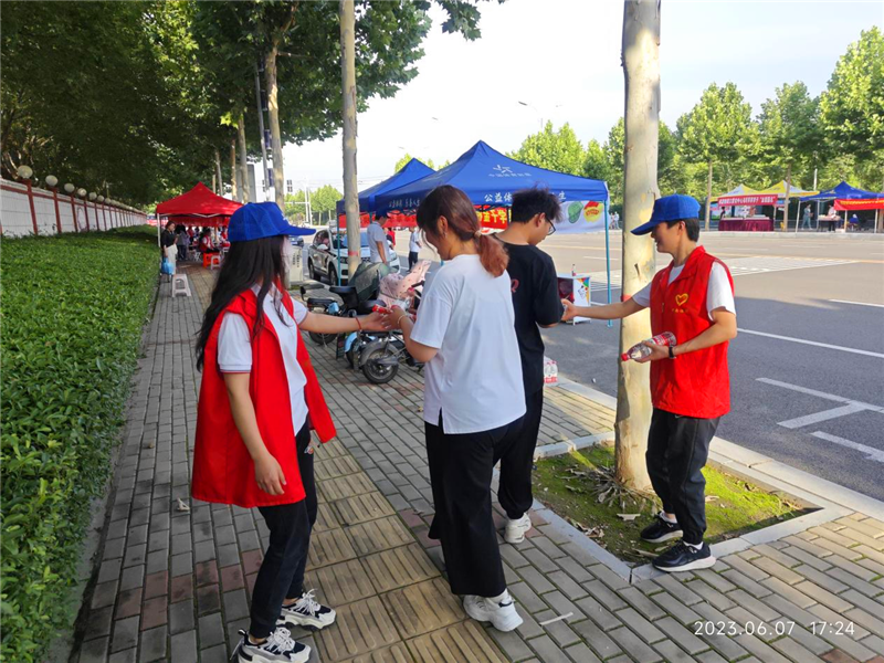 6月7日上午,一年一度的高考如期進行。為助力學子順利考試,奉獻社會愛心,河南省體育彩票管理中心周口分中心聯合共青團周口市委,在周口市文昌中學考點設立服務站點開展愛心助考活動。