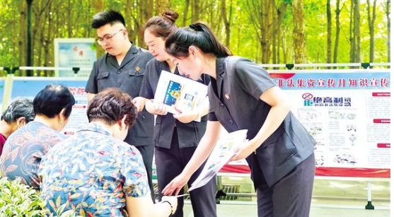 • 6月15日,項城市在北公園舉行以“守住錢袋子·護好幸福家”為主題的2023年防范非法集資宣傳月活動,副市長戶超品走進現場,與群眾一起了解如何進行識別非法集資常見的一些“套路”。