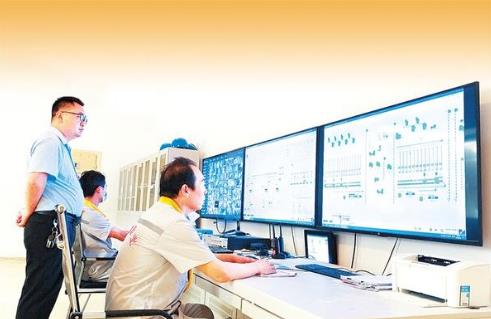 “我在這兒干了10年了,高科技太方便了。你看,全廠區(qū)所有車間、所有設(shè)備的運(yùn)行數(shù)據(jù),通過(guò)這個(gè)中控大屏一目了然。原來(lái)七八個(gè)人的生產(chǎn)線,現(xiàn)在1個(gè)人就能現(xiàn)場(chǎng)管控,只需要配合智能中控作業(yè)就行了。”