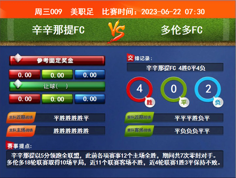 比賽時間:2023-06-22 07:30賽事提點:辛辛那提以5分領跑全聯(lián)盟,此前各項賽事12個主場全勝,期間共7次零封對手。多倫多18輪聯(lián)賽取得10場平局,近11個聯(lián)賽客場不勝,近4輪聯(lián)賽1勝3平保持不敗。