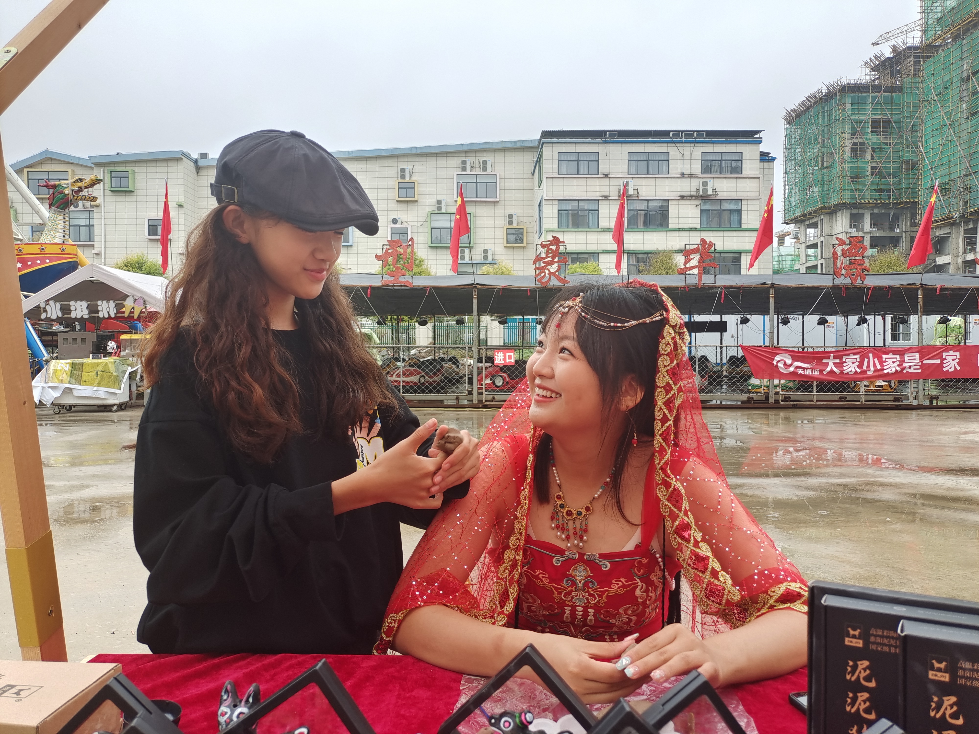 伴隨著開場(chǎng)舞《盛世歡歌》,“潮流雙節(jié)·中秋游園會(huì)暨國(guó)慶嘉年華”活動(dòng)啟動(dòng)儀式正式拉開帷幕。泥泥狗、剪紙、書法、繪制團(tuán)扇……現(xiàn)場(chǎng)工作人員有的身著少數(shù)民族服裝,有的身著漢服,用親手制作的方式展示著傳統(tǒng)非物質(zhì)文化遺產(chǎn)獨(dú)有的韻味,吸引著來(lái)往的大人小孩駐足。有的甚至親自參與制作,捏泥泥狗、寫毛筆字、畫傳統(tǒng)團(tuán)扇……現(xiàn)場(chǎng)歡笑不斷,大家在親自動(dòng)手的過程中充分感受著中國(guó)傳統(tǒng)節(jié)日的豐富文化內(nèi)涵。