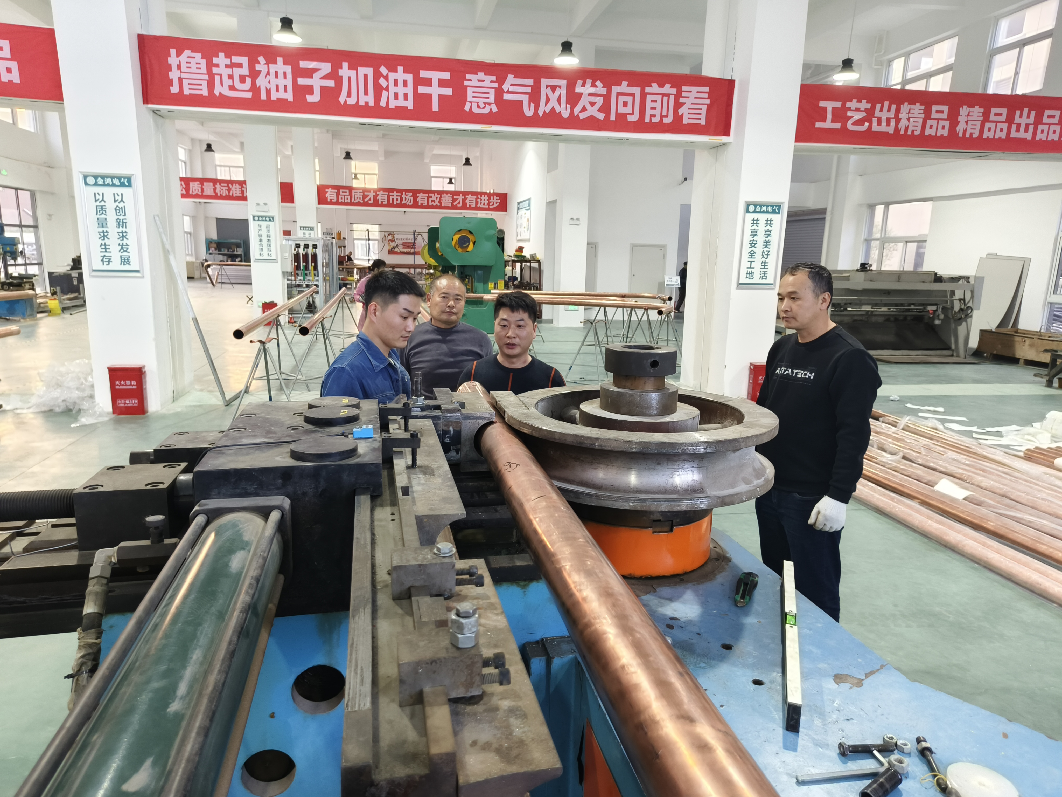 • 10月26日21時,臨港開發區中興新業港產業園內,河南金鴻電氣有限公司(以下簡稱金鴻電氣)生產車間燈光明亮,十多位技術工人加班加點,趕制重慶鋼廠訂購的一批絕緣銅管母線,11月初,這筆產品必須完成、送到。金鴻電氣總經理苑福來說:“今年工廠邊建設邊生產,預計年產值能達到1億元,為明年產能擴張打下基礎。”