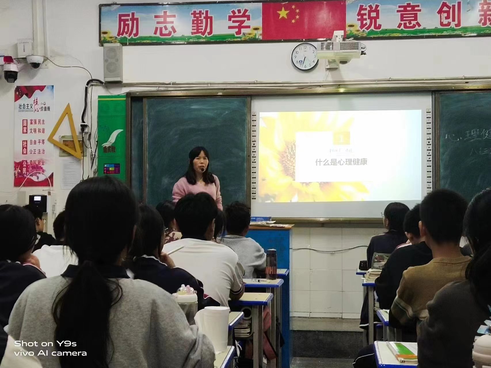 學校政教處提前制作好課件,各班班主任充分利用第一節晚自習,從“什么是心理健康”“中小學生心理健康的標準”“增進心理健康的途徑”三個方面進行認真講解,引導學生合理調節自己的心理,啟示學生日常生活中不僅需要有健康的體魄,而且更需要有健康的心靈,并正確認識自我、接納自我,享受美好人生。特別在講到“增進心理健康途徑”這一環節時,學生積極發言,師生頻繁互動,最終讓學生們明白對于同一件事情,個人想法不同帶來的情緒也不相同,要保持樂觀的生活態度,即使遭遇到挫折、失敗,依然能夠保持積極向上的情緒。