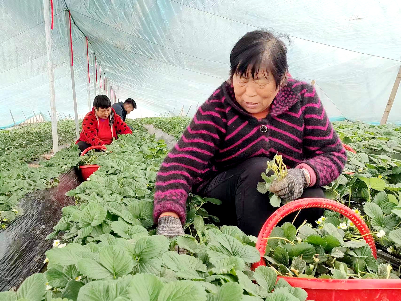 “自從這里開始種草莓,我就來這里打工了,已經干了3年,這兒離家近,顧家掙錢兩不誤。”楊湖口鎮水牛張村脫貧監測戶劉素華負責草莓園日常管護工作,對于這份工作她感到十分滿意。