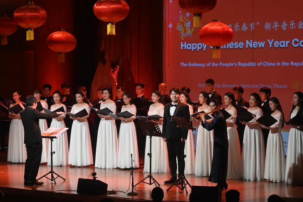作為西班牙馬德里“歡樂春節”系列慶祝活動的一部分,“中國新春音樂會”日前在馬德里國家音樂廳舉行。從《陽關三疊》等中國詩詞合唱作品,到《敖包相會》《茉莉花》等中國民歌,再到《飲酒歌》等西方音樂選段,深圳歌劇舞劇院合唱團與民樂演奏家合力獻上一臺融合中西經典曲目的音樂會。