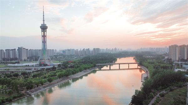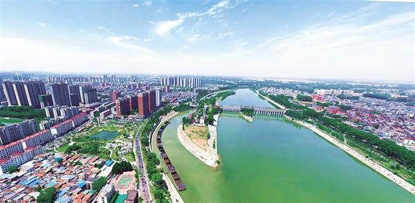 6月17日,藍天白云下的周口中心城區格外秀美。近年來,我市深入貫徹習近平生態文明思想,堅定不移踐行“兩山”理念,堅持生態惠民、生態利民、生態為民,讓市民在建設美麗家園中共享自然之美、生命之美、生活之美。