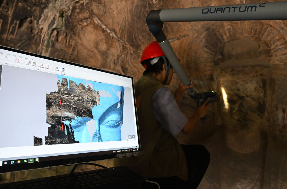 面對(duì)歷經(jīng)千年的石窟,如何延續(xù)其生命力?科技成為關(guān)鍵答案。文物保管展示與文獻(xiàn)資料中心的張國(guó)鋒,日常工作便是對(duì)石窟進(jìn)行三維數(shù)字化掃描。他介紹,通過這項(xiàng)技術(shù)建立的高精度數(shù)字檔案,不僅實(shí)現(xiàn)文物信息的永久保存,更讓不可移動(dòng)的石窟“走出去”,突破時(shí)空限制,讓更多人領(lǐng)略其文化魅力。