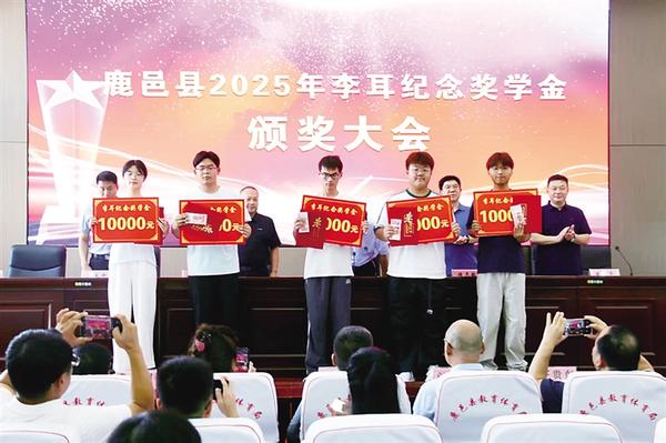 8月15日,鹿邑縣2025年李耳紀念獎學金頒獎大會在縣教體局舉行。侯璇青、李易澤等10位優秀學子獲得獎學金。圖為與會領導和獲獎學子合影留念。 記者 侯國防 通訊員 宋夢麗 攝