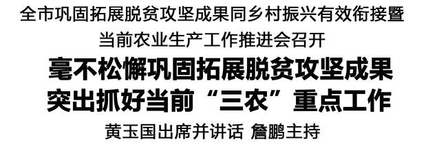本報訊(記者 王艷) 11月10日,全市鞏固拓展脫貧攻堅成果同鄉(xiāng)村振興有效銜接暨當前農(nóng)業(yè)生產(chǎn)工作推進會召開,對鞏固拓展脫貧攻堅成果、抓好當前農(nóng)業(yè)生產(chǎn)工作進行再動員再部署。市委書記黃玉國出席并講話。市長詹鵬主持。