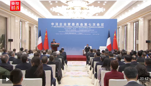12月4日中午,國家主席習近平在北京同法國總統馬克龍共同出席中法企業家委員會第七次會議閉幕式并致辭。