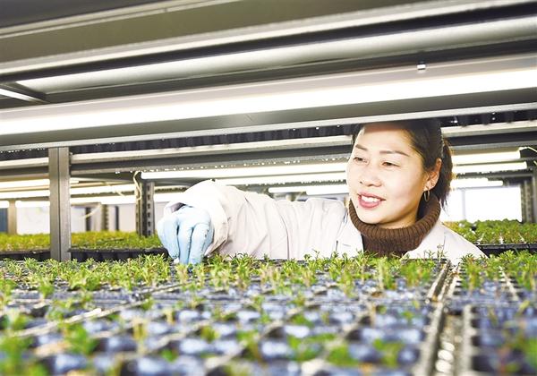 12月28日,在淮陽區王店街道祝寨村植物新型再生技術快繁基地,技術人員正在育苗。據了解,該基地可年繁育迷迭香苗1000萬株、高檔花卉苗500萬株、黃花菜種苗1000萬株,成為目前全國規模最大的植物新型再生技術快繁基地之一。