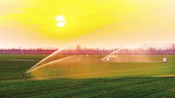 12月8日,在扶溝縣大李莊街道中營村的農田里,農戶正抓緊趁晴好天氣為冬小麥澆灌封凍水。