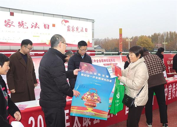 近日,太康多個單位在縣人民廣場舉行“12·4”國家憲法日集中宣傳活動,向廣大群眾普及憲法知識,引導廣大群眾牢固樹立憲法意識、維護憲法權威。縣長張峰,縣領導邱范卉、劉鳳芹、王洪彬、史耀閣等到場參觀指導。