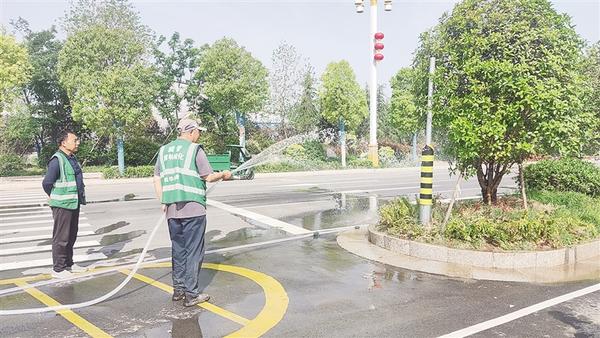 4月18日,西華經開區工作人員在中航路開展路邊綠化養護工作,悉心為綠化植物澆水,為西華經開區增添一抹生機與綠意。