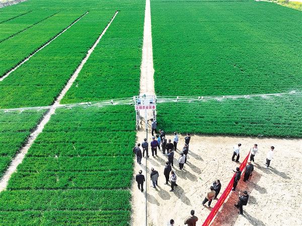 設施農業看泛區。近日,黃泛區農場一企業自主研發的小型自走式澆地機備受種植大戶關注。