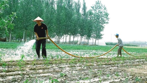 前幾天,受持續高溫天氣影響,西華一些農田出現干旱,為確保秋作物正常生長,農戶積極抗旱。圖為農戶為辣椒苗補充水分。