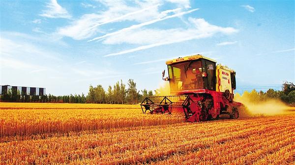 5月22日,農機手駕駛收割機在扶溝縣大李莊鄉馮老行政村的一塊麥田里收割小麥。近日,扶溝104萬畝小麥相繼進入成熟收割期。