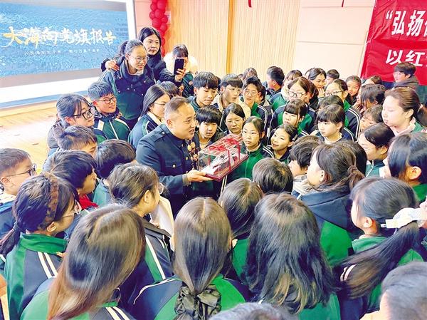 近日,退役軍人張千在商水縣第一高級中學(xué)的講臺上為學(xué)生講述人民海軍從無到有、由弱變強的壯闊征程。