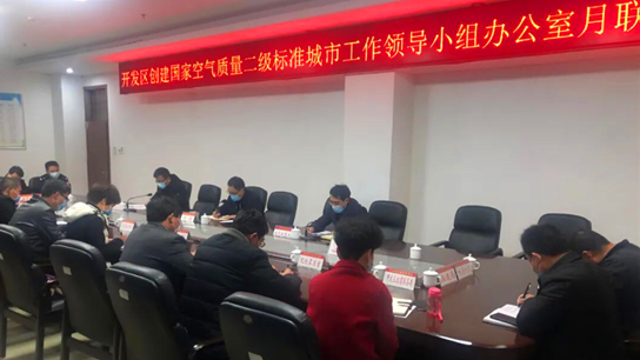 4月1日上午,開發區管委會副主任于杰主持召開創建國家空氣質量二級標準城市工作領導小組辦公室月聯席會議,分析當前形勢,安排重點任務。