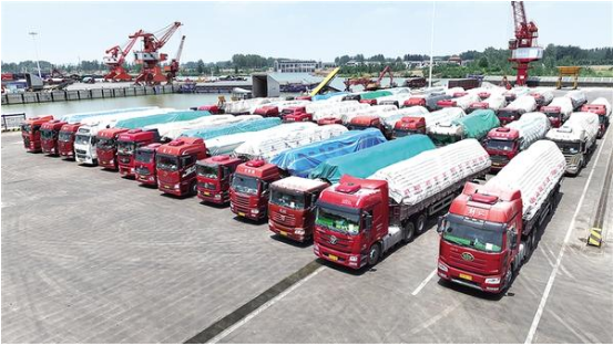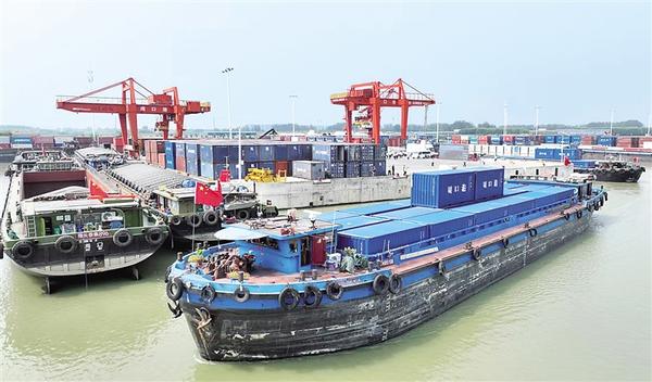 沙潁河畔,秋意正濃。一艘艘滿載貨物的船舶踏浪而行,駛向周口港范營作業(yè)區(qū)。碼頭上,龍門吊高聳入云,運輸車輛川流不息,工人們忙碌作業(yè),呈現(xiàn)出一派欣欣向榮的景象。