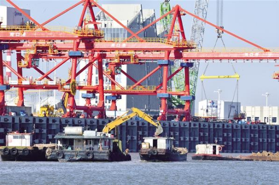 初冬的沙潁河畔,臨港開發(fā)區(qū)呈現(xiàn)出一派繁忙景象。在中心港范營作業(yè)區(qū),岸橋吊臂有序起落,集卡車輛川流不息。