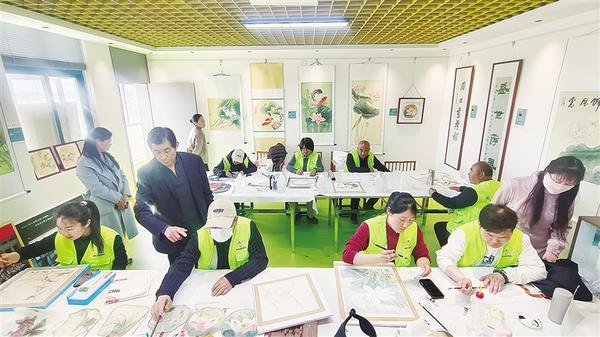 近日,淮陽區王店街道王樓村村民在美術老師的指導下畫荷花。作為遠近聞名的“畫荷村”,王樓村一直延續著畫荷花的傳統。農閑時,村民經常在老師的指導下學習繪畫技巧,將鄉村生活的恬靜與荷花的靈動融入筆墨之間。