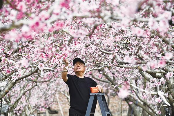 3月23日上午,工作人員為桃花授粉。近日,川匯區園藝中心的200多畝桃花競相開放,宛如世外桃源。隨著天氣逐漸轉暖,桃花、油菜花持續盛開,周口進入“賞花模式”。
