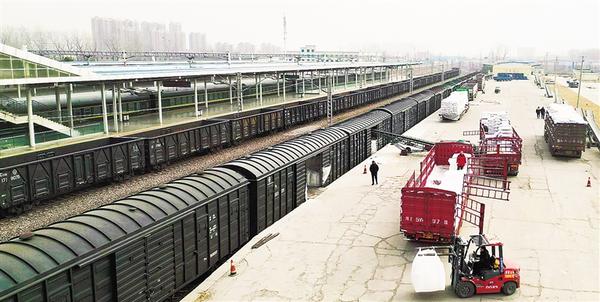 2月22日上午,漯阜鐵路周口站貨場(chǎng)一片繁忙,滿載農(nóng)資的火車(chē)到站卸貨,有力保障了我市農(nóng)業(yè)生產(chǎn)的物資需求。