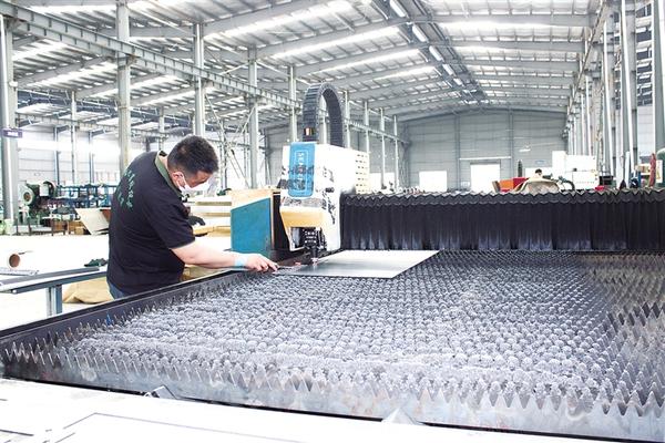 日前,在位于太康縣開發區的河南銀星畜牧設備有限公司生產車間,工人對鋼板進行切割作業。