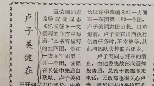 【紅色記憶】盧子美:從未“掉隊”的紅軍團長