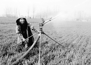 3月7日,扶溝縣大李莊鄉馮老村村民正在給小麥澆返青水。春節過后,扶溝縣農民及時管理麥田,確保夏糧豐收。