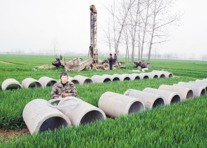 ②3月23日,扶溝縣大李莊鄉(xiāng)常崗村村民正在田間打井。入春以來(lái),大李莊鄉(xiāng)利用爭(zhēng)取到的資金,大力實(shí)施基本農(nóng)田灌溉工程,切實(shí)解決部分農(nóng)田地塊的澆灌難題,為奪取夏糧豐收奠定扎實(shí)基礎(chǔ)。
