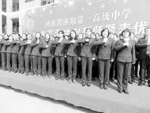 3月21日,淮陽一高舉行 “高考百日沖刺”誓師大會。校長王業(yè)生及高一、高二、高三年級全體師生參加了會議。青年教師代表付士翔、家長代表張鳳啟及學(xué)生代表分別進(jìn)行了充滿激情的發(fā)言。在距2015年高考還有100天的日子里,師生莊嚴(yán)宣誓:“以頑強(qiáng)的意志、百倍的激情、無窮的潛力,以最刻苦的精神、最堅韌的毅力,全力以赴,奮勇爭先,爭分奪秒,苦戰(zhàn)百日,決戰(zhàn)高考,誓創(chuàng)輝煌。”(豆紀(jì)鋒 攝)