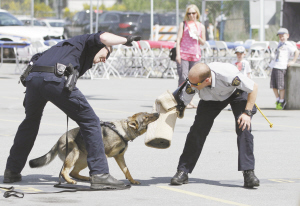 加拿大迎來全國警察周 5月9日, 在加拿大溫哥華地區的素里市,警察在警局開放日活動上向民眾示范警犬訓練情況。為迎接一年一度的全國警察周,素里市皇家騎警總部當日舉辦開放日活動,向民眾展示警方裝備及介紹警隊日常工作。新華社發