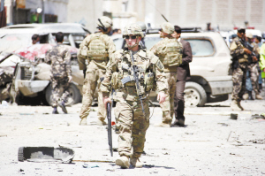 阿富汗喀布爾機場附近發生爆炸 5月17日,士兵在阿富汗首都喀布爾發生爆炸的現場查看。阿富汗首都喀布爾機場附近17日發生一起自殺式爆炸襲擊,造成至少3人死亡、18人受傷。 新華社發