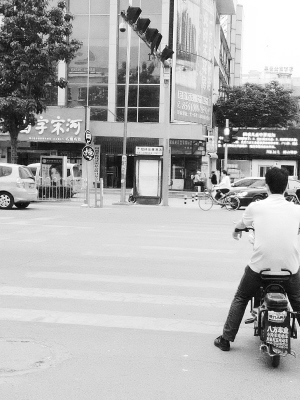 位于周口市七一路與文明路交叉口的一塊路牌損壞嚴重,路名也被一家酒店的廣告遮擋住了。
