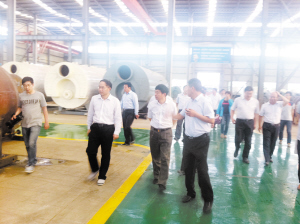 考察團在太康四通鍋爐公司生產車間參觀考察。