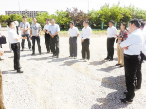 考察團在鹿邑豪瑞斯木業公司施工地參觀考察。