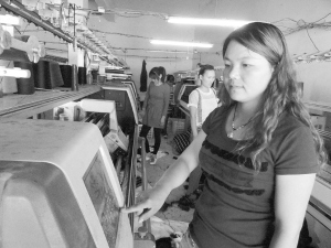 5月24日,商水縣巴村鎮(zhèn)上城村返鄉(xiāng)農(nóng)民工黨強(qiáng)嗆和工人一起操作電子編織機(jī)。黨強(qiáng)嗆返鄉(xiāng)后創(chuàng)建了毛織廠,吸收村里30多位村民進(jìn)廠工作。近兩年來(lái),該縣通過(guò)實(shí)施“回歸工程”,使3000多名“金鳳凰”歸巢興業(yè),并為6萬(wàn)名多農(nóng)村剩余勞力提供了就業(yè)崗位。(喬連軍 攝)
